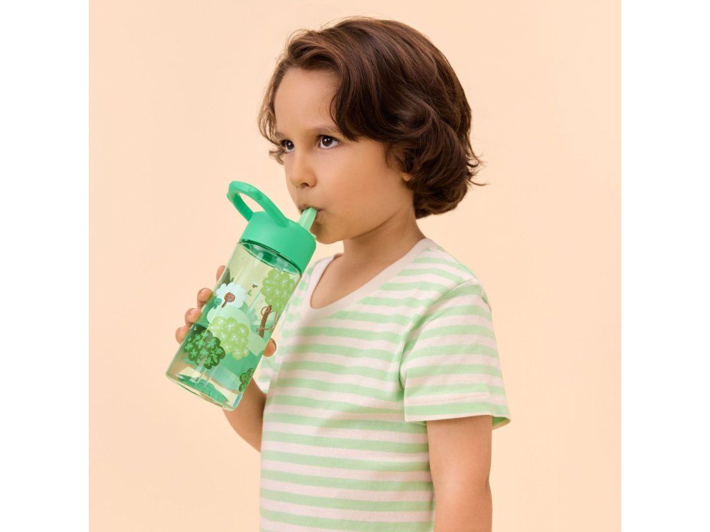 Láhev je vyrobena z kvalitních materiálů bez škodlivých látek, takže je bezpečná pro každodenní použití. Ergonomický tvar usnadňuje držení i manipulaci malým dětem a dobře těsnící uzávěr pomáhá zabránit nechtěnému rozlití v batohu.